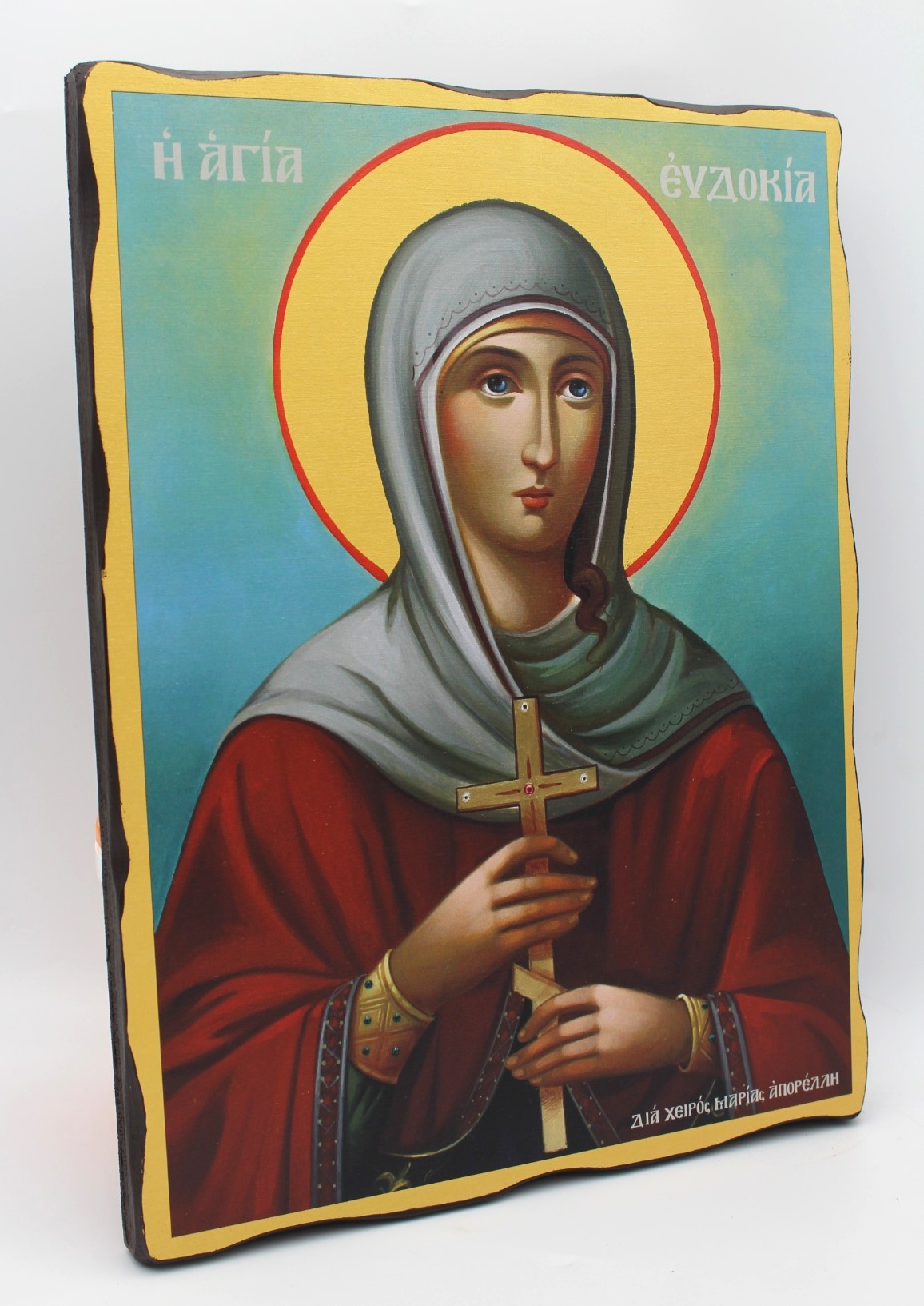 Αγία Ευδοκία σε ξύλο τεχνητής Παλαίωσης