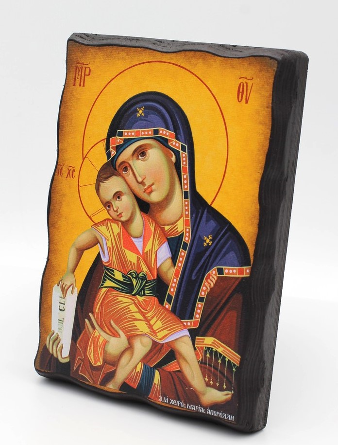 Η εικόνα είναι τυπωμένη σε τεχνητό παλαιωμένο ξύλο σημύδας 2εκ, συνδυάζοντας τη ρουστίκ γοητεία του παλαιωμένου ξύλου με την παραδοσιακή ορθόδοξη αγιογραφία.
