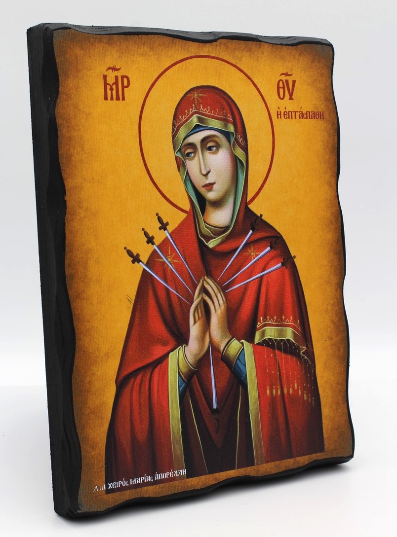 Παναγία η Επτάσπαθη σε ξύλο τεχνητής Παλαίωσης