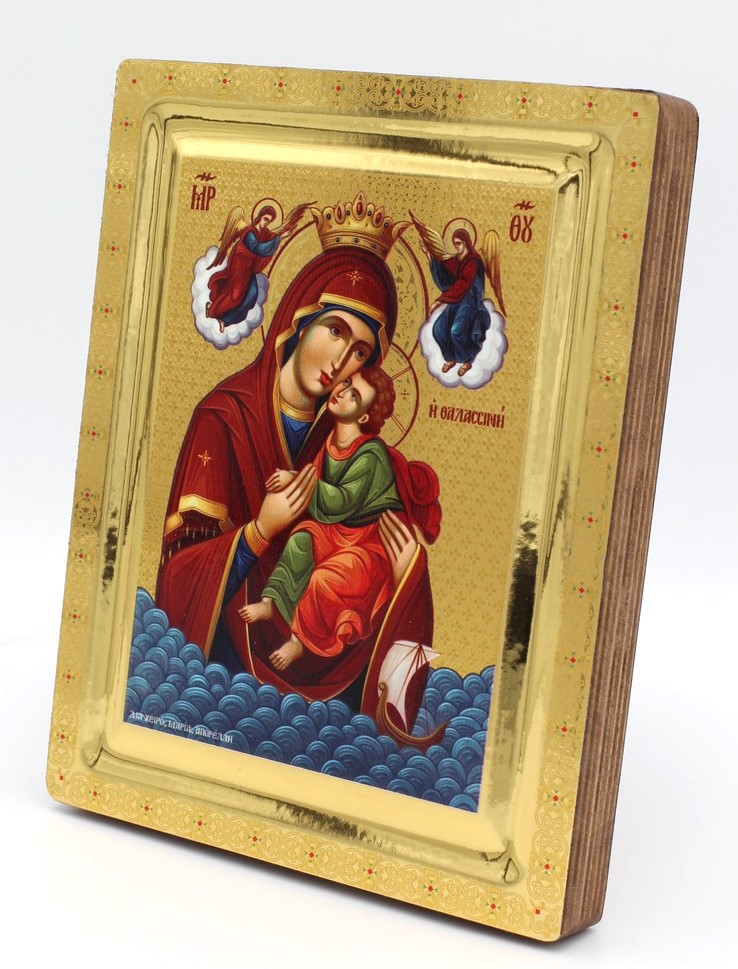 Παναγία η Θαλασσινή σε σκαφτό ξύλο με όψη Στιλβωτού
